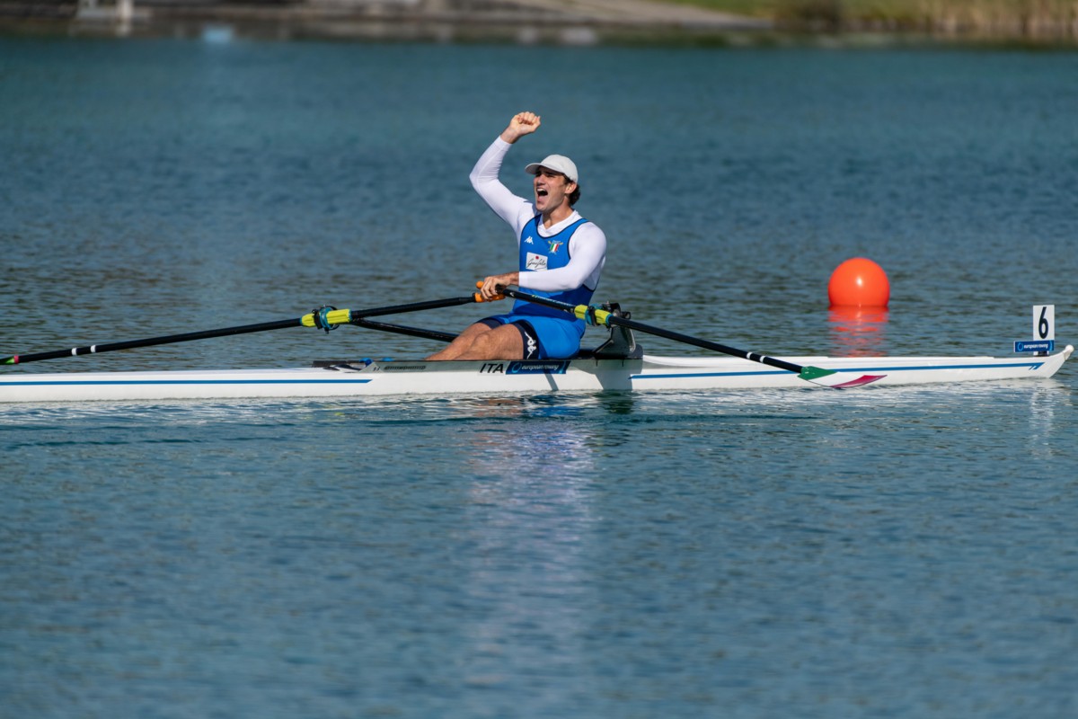 podio. L’Europeo comincia col botto: in batteria ci sono Lituania e Belgio, vale a dire oro e argento al fotofinish al Mondiale; Prati non sfigura, restando a contatto tutta la gara e qualificandosi alla semifinale in virtù del terzo posto. La semifinale è proibitiva: oltre il Belgio il singolista azzurro si trova contro Polonia e Danimarca e solo dopo metà gara riesce a conquistare e a difendere la terza posizione, l’ultima piazza per accedere alla finale. Finale che lo sculler ravennate conduce in acqua 1 ed interpreta magistralmente. La partenza non è il punto forte dell’azzurro, che transita ai 500 metri in sesta posizione in 1:48:89. Ma, mentre Lituania e Belgio sembrano avere una marcia in più,